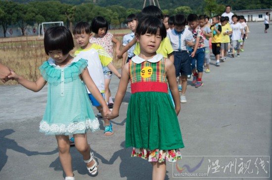 浙江师范大学暑期实践“乐采清华”军训活动:一年级小朋友手拉手赶赴南岳大礼堂