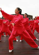 世界小姐打太极,真的是名副其实的花拳绣腿。2015年11月11日,第65届世界小姐中国总决赛参赛的42位佳丽在韩国釜山港邮轮码头表演太极拳。