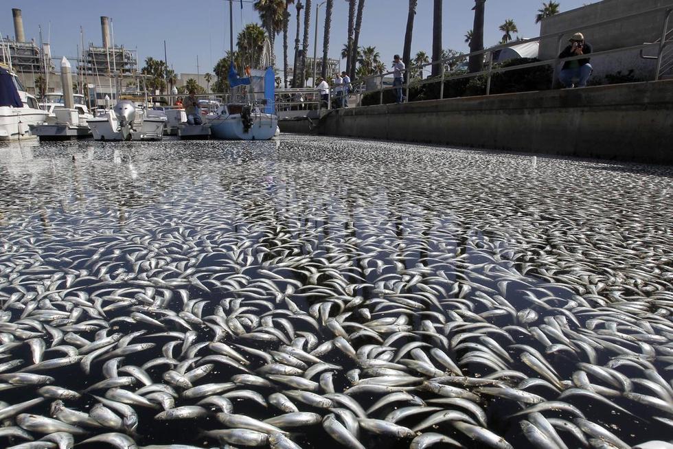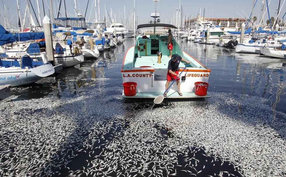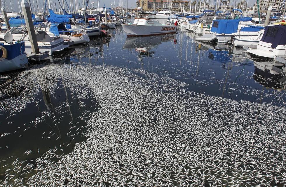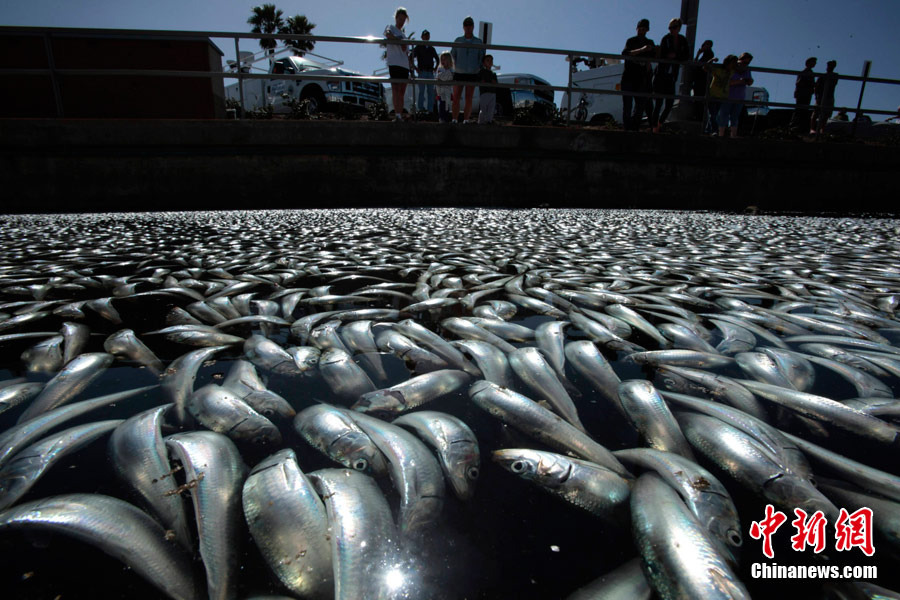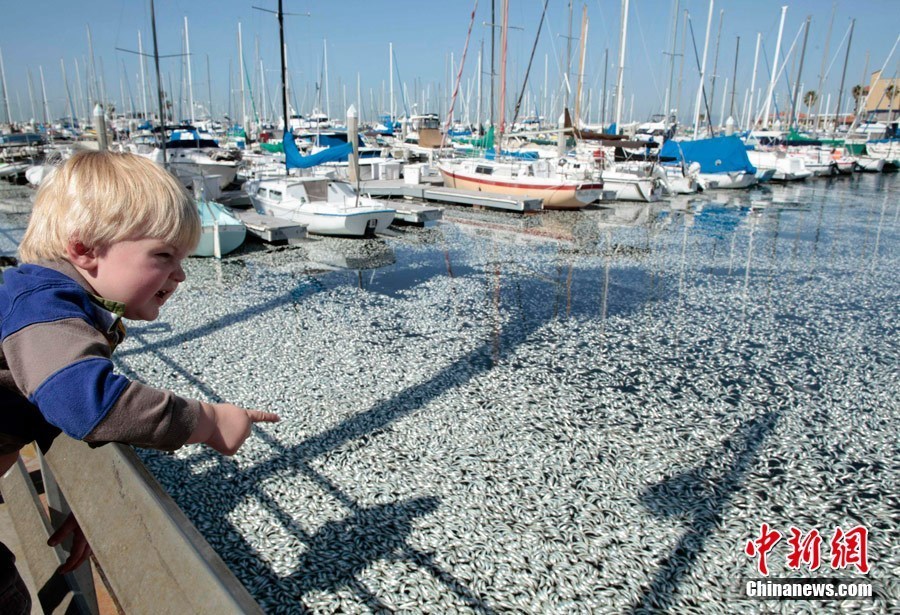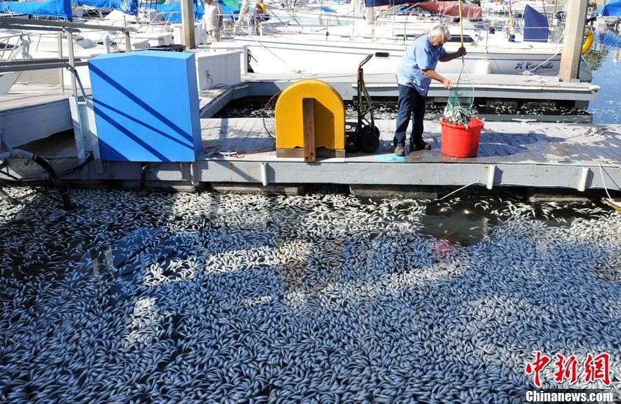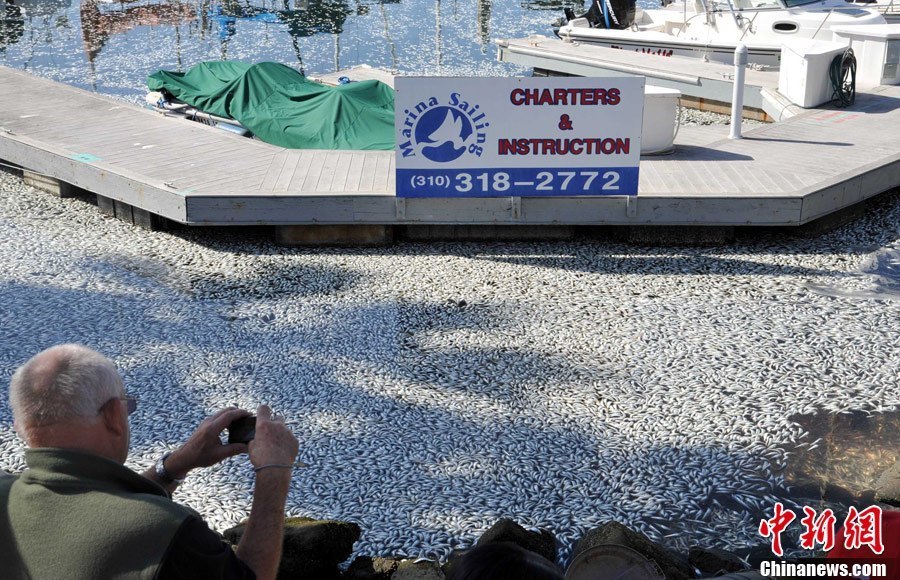 美国加州海湾出现数百万条死鱼,引起大面积如此数量死鱼是什么原因引起,暂时没有发现污染源。美国当地时间3月8日,加州洛杉矶以南的海湾区突然出现数百万条死鱼,包括凤尾鱼、鲭鱼、沙丁鱼和其它小鱼。当地一名警方发言人说,死鱼大约有一英尺那么深,国王码头(King Harbor Marina)几十条私人船只周围到处是死鱼。