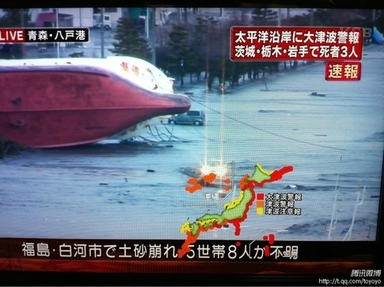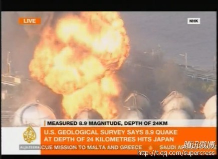 日本地震-日本近海特大地震,此次日本大地震引发日本海啸十几米海浪。3月11日,日本以东海域发生8.9级强烈地震并引发巨大海啸,冲毁沿岸建筑物。千叶县炼油厂爆炸起火。
