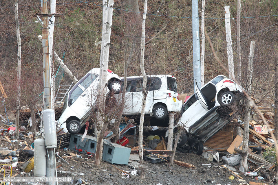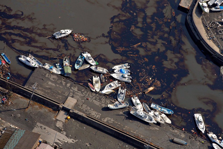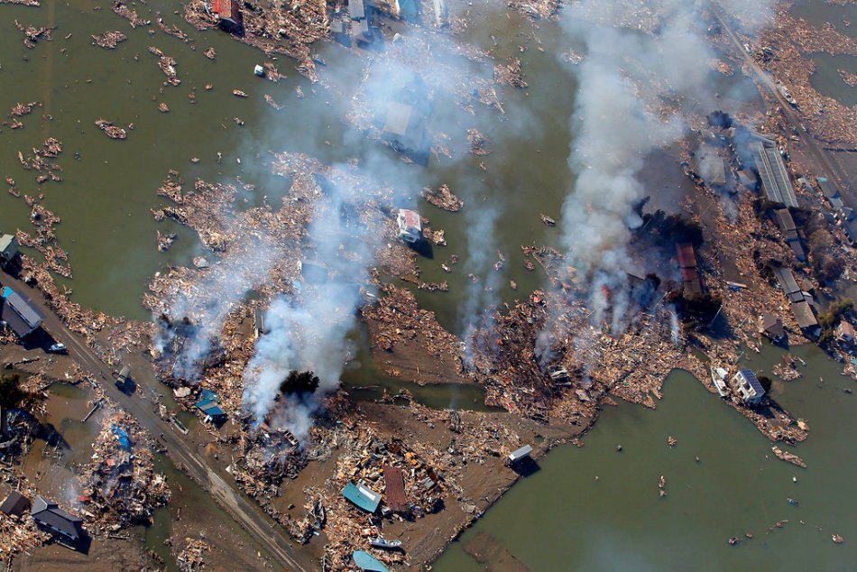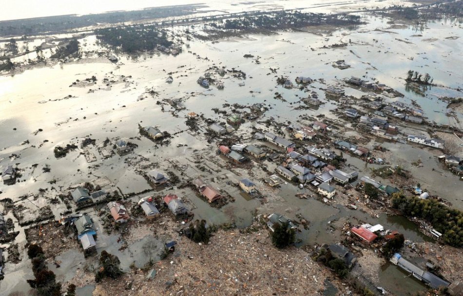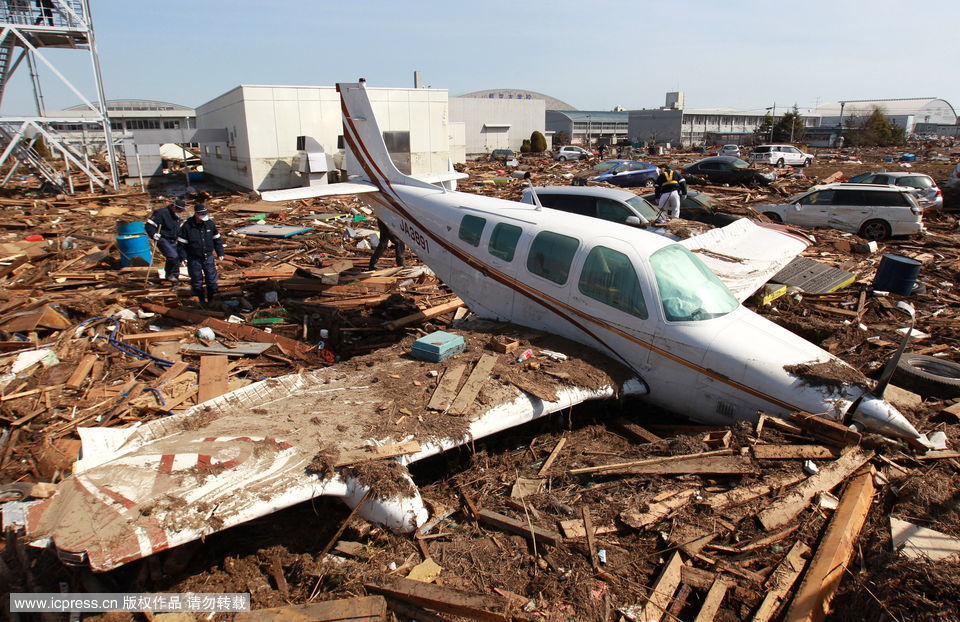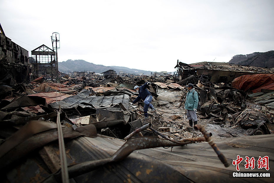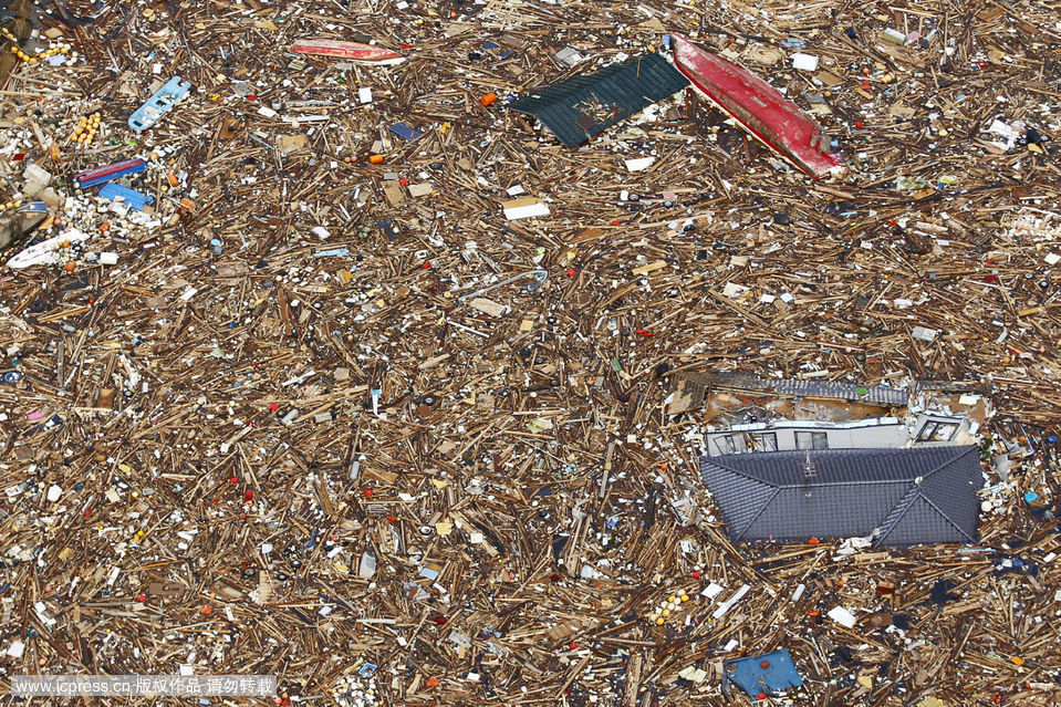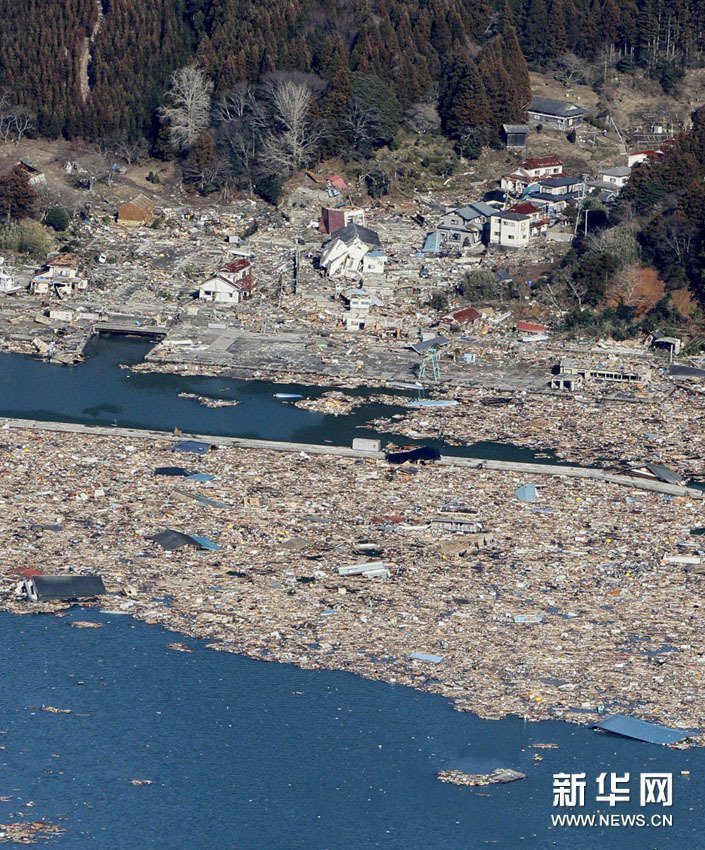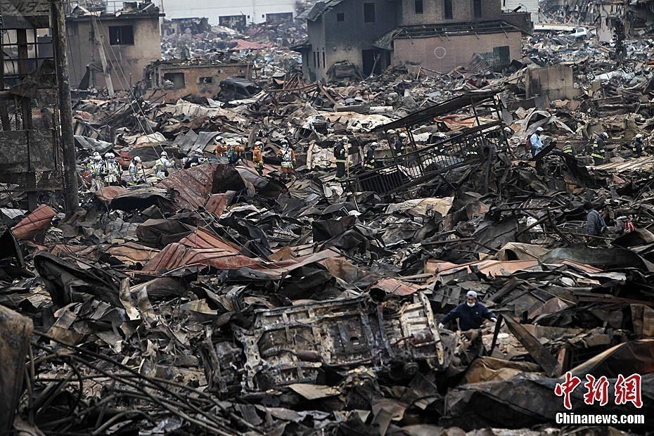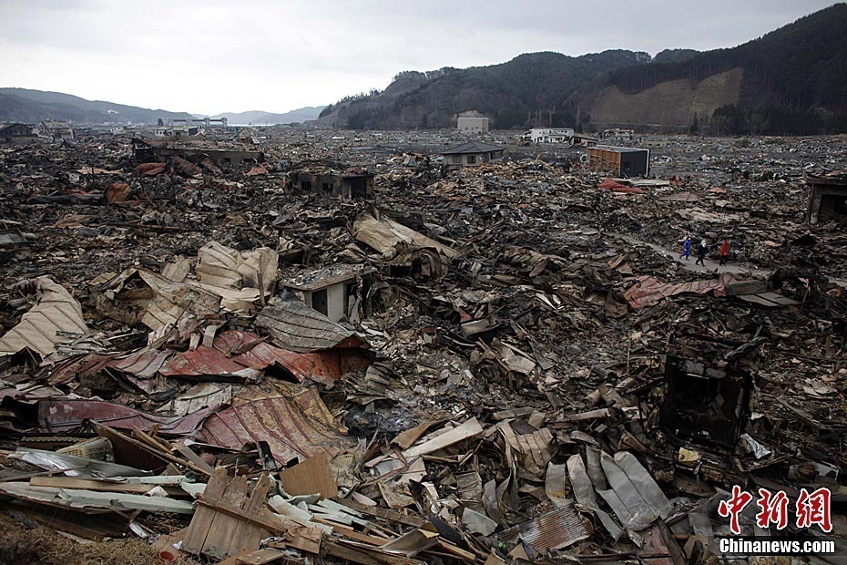 日本海啸过后的灾区照片,看不到一座房子了,到处是被海啸冲刷后的建筑物碎片,日本地震海啸灾区的凄惨画面。