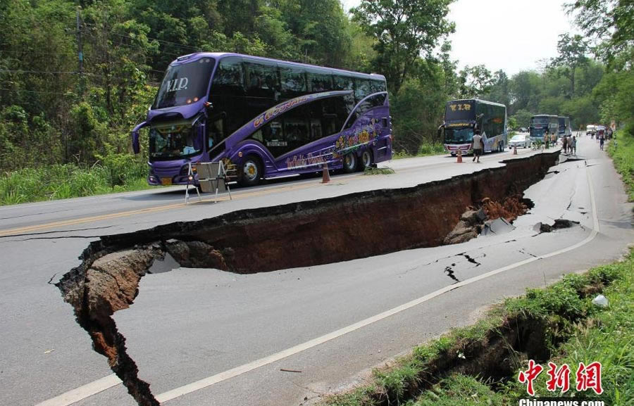 头条 > 图片 > 国际 > 泰国5月5日地震造成公路损坏寺庙受损 1人遇难数十人受伤 时间:2014-05-07 21:02来源:未知 据中国地震台网测定,北京时间2014年5月5日19:08:38,在泰国北部和缅甸交界附近发生6.4级地震,泰国地震已造成1人遇难,数十人受伤,震区的道路开裂,寺庙被损毁,附近居民的房屋有开裂和窗户玻璃被震碎。 原始图片 上一张 下一张 (yujeu)