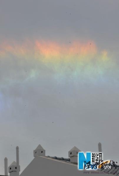 银川上空出现日晕奇观 伴随罕见七色彩云(图)