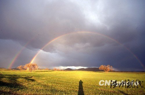 内蒙古大草原出现罕见“双彩虹”奇观(图)