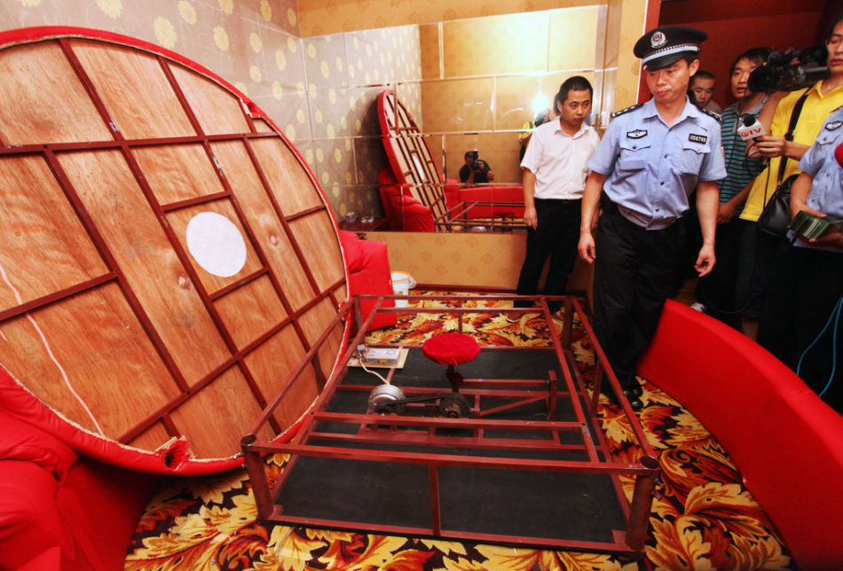 头条 > 图片 > 国内 > 西安警方突击娱乐场所 现场拆除合欢床 时间:2010-08-16 20:04来源:未知 2010年8月13日晚至14日凌晨,西安市公安雁塔分局出动600余名民警,分成9个组,对全区60余家歌舞游艺、洗浴、足浴、桑拿等娱乐服务场所涉及 “黄赌毒”的情况进行突击检查。勒令4家违法经营的大众舞厅停业整顿,6名涉嫌容留介绍妇女卖淫的当事人被刑事拘留。另外拆除“紫荆城水疗城”内涉嫌为客人提供色情服务的“合欢床”两张。 原始图片 上一张 下一张 (温州视线)