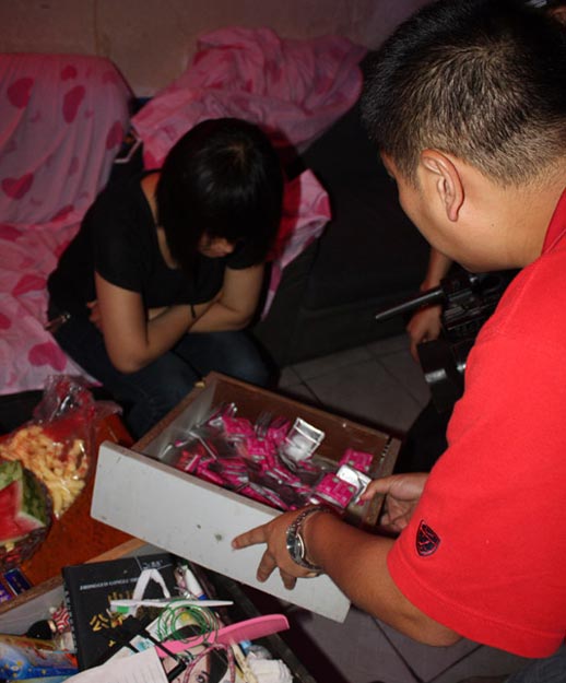 头条 > 图片 > 国内 > 西安警方连夜扫黄 美发厅挂毛巾招揽生意 时间:2010-08-28 19:16来源:未知 8月26日,西安市雁塔分局调集60余名警力,对吉祥村20余家美容美发厅进行清查,结果发现当晚所查6成美容美发厅都有色情交易违法活动,当场抓获涉嫌卖淫嫖娼53人。民警在检查中从涉嫌卖淫人员处搜出的避孕套。 原始图片 上一张 下一张 (温州视线)