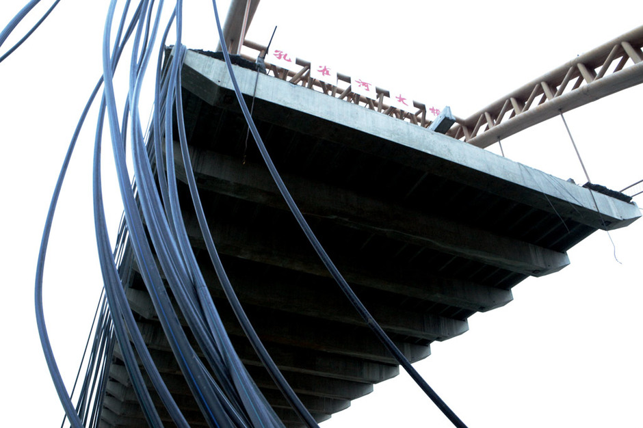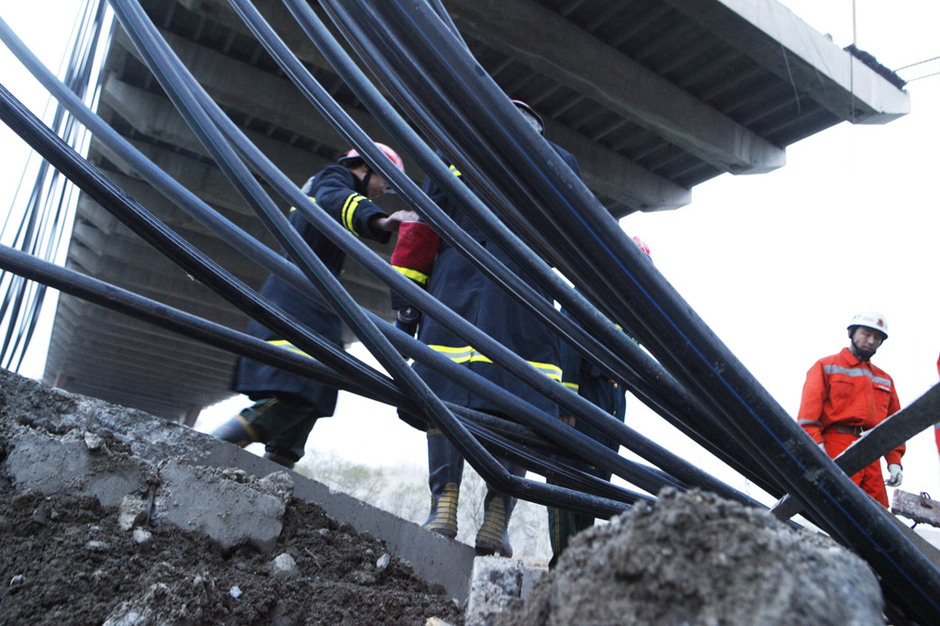 4月12日拍摄的新疆库尔勒市孔雀河大桥垮塌现场。