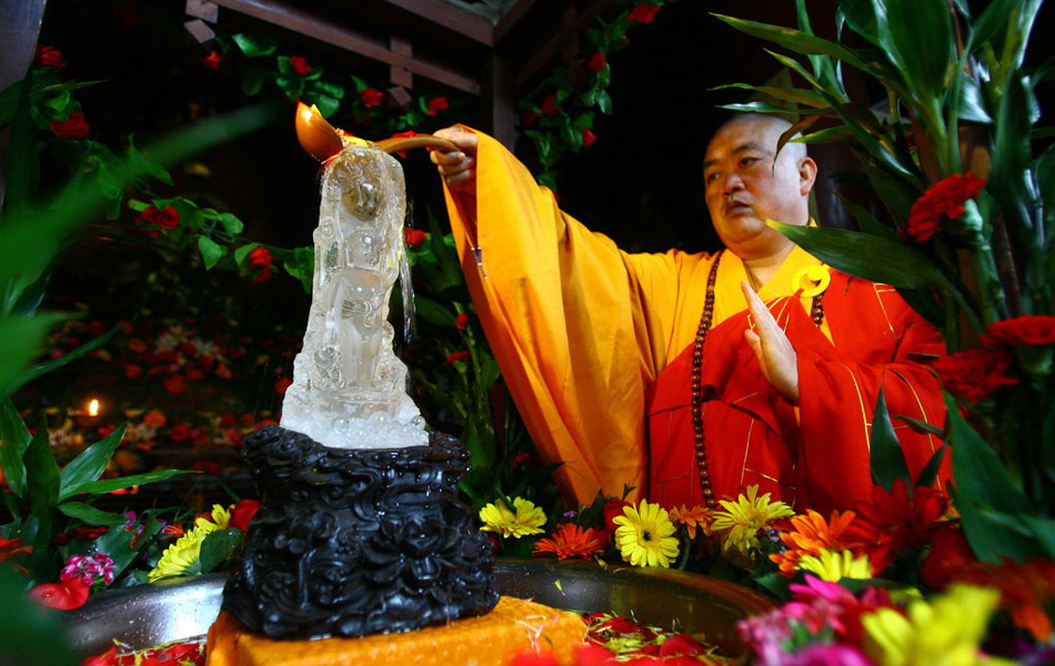头条 > 图片 > 国内 > 少林寺方丈释永信主持年度“浴佛节祈福大法会” 时间:2011-05-10 19:24来源:未知 少林寺方丈释永信主持年度“浴佛大法会”,2011年5月10日,农历四月初八为释迦牟尼佛圣诞日。今年为佛祖诞辰2555周年,河南登封少林寺举行一年一度的“浴佛节祈福大法会”。法会由释永信方丈主持,少林寺全体僧众及郑州市佛协组织的居士百余人参加。 原始图片 上一张 下一张 (温州视线)