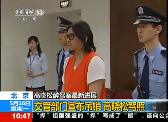 头条 > 图片 > 国内 > 因醉驾高晓松将被吊销驾照 高晓松的国际驾照吊销 时间:2011-05-16 16:49来源:未知 因醉驾高晓松将被吊销驾照,5月16日上午,高晓松醉驾撞车一案在北京市东城区人民法院受理。高晓松被吊销机动车驾驶证并处以一千元罚金,五年内不得重新取得驾照。宣判现场,高晓松身着橙色拘留服,表情肃穆,认真听民警宣判公安行政处罚决定。 原始图片 上一张 下一张 (温州视线)