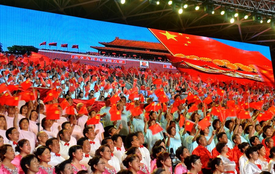 头条 > 图片 > 国内 > 建党九十周年红歌会 千人红歌会庆祝建党90周年(新闻图片) 时间:2011-06-22 16:16来源:未知 建党九十周年红歌会新闻图片,6月21日,庆祝中国共产党成立90周年“颂歌献给党”红歌会在北京市石景山体育馆举行,来自驻区机关、部队、院校、社区居民等数千人参加了千人红歌会庆祝建党90周活动年。在北京石景山区“庆祝建党90周年红歌会”上,千余名军民共同高唱《没有共产党就没有新中国》。新华社发(李文明 摄) 原始图片 上一张 下一张 (温州视线)