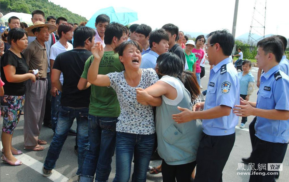 浙江新闻:浙江温岭男子偷车遭警方追击,偷车男子跳河后在河里与警方对峙四十分钟后溺水死亡。这起事故警方负有严重的责任,犯罪嫌疑人已经偷盗的仅仅是一辆电瓶车,既然犯罪嫌疑人已经跳河,警方不应该预料到犯罪嫌疑人会溺水,尤其该偷车的男子在水中长达四十分钟与警方对峙,这起溺水事故完全是警方的责任。据了解,死亡男子蒋某今年25岁,温岭市石桥头镇土坦头村人士,家里有父母和一兄长、另外妻子也怀孕9个半月就快临产。图为家属得知男子已经死亡,情绪激动。