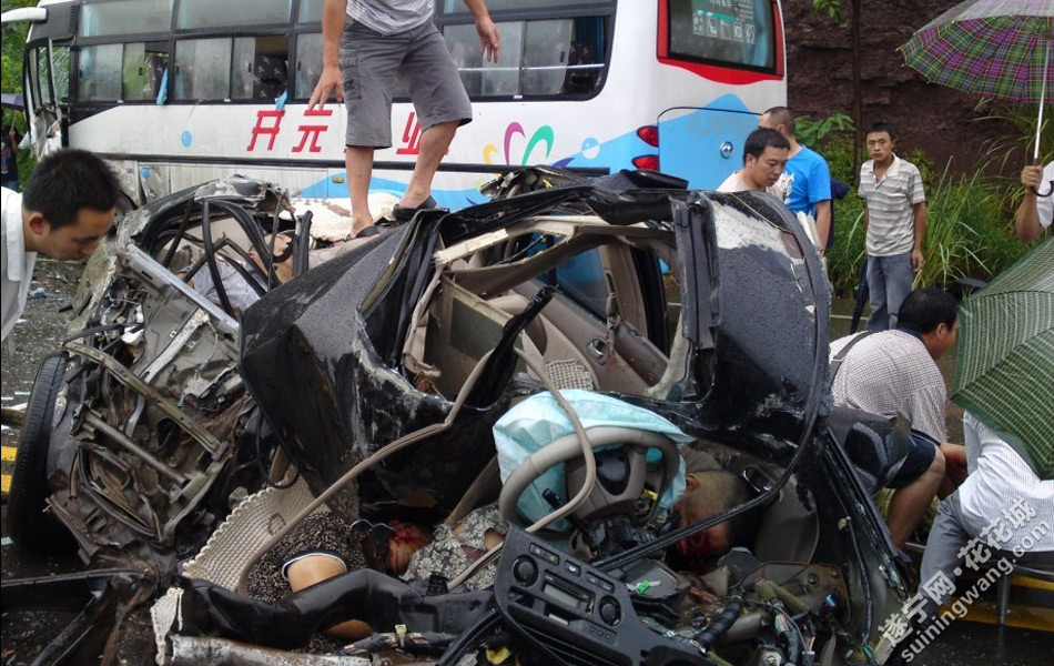 头条 > 图片 > 国内 > 遂宁市蓬溪县车祸 四川蓬溪县车祸造成当场3人死亡轿车被撞碎 时间:2011-08-24 19:33来源:未知 8月22日中午11时许,遂宁市蓬溪县发生惨烈车祸,一辆开往遂宁方向的中巴车与开往蓬溪的黑色小轿车相撞,中巴车将小车车身撞散架,轿车中四人被卡,其中有一小女孩;中巴车车头严重受损,车上坐满乘客。车祸事故发生点距离蓬溪县新车站1000米左右。 原始图片 上一张 下一张 (温州视线)