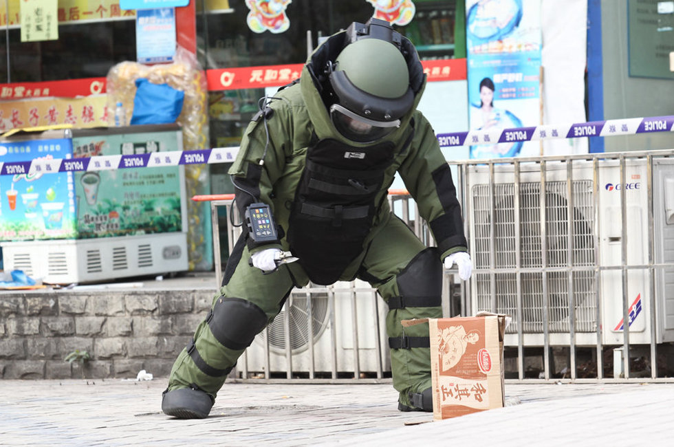 头条 > 图片 > 国内 > 深圳闹市区发生三起假炸弹报警 深圳警察拆弹好像欧美大片 时间:2012-03-17 20:57来源:未知 深圳闹市区发生假炸弹报警,深圳警察拆弹场面很熟悉,这种场面很像欧美大片。2012年3月16日14时至16时24分许,深圳罗岗派出所接到三起报警,称在布吉街道中心路某酒店附近、布吉某小区门口和布吉中国银行罗岗支行门口,分别发现有一辆小汽车的车玻璃上贴有“该车有炸弹,不要报警”的纸条。至17时,在三辆小汽车及附近未发现爆炸物,确认是假爆炸物警情。警察靠近“炸弹”。 原始图片 上一张 下一张 (yujeu)