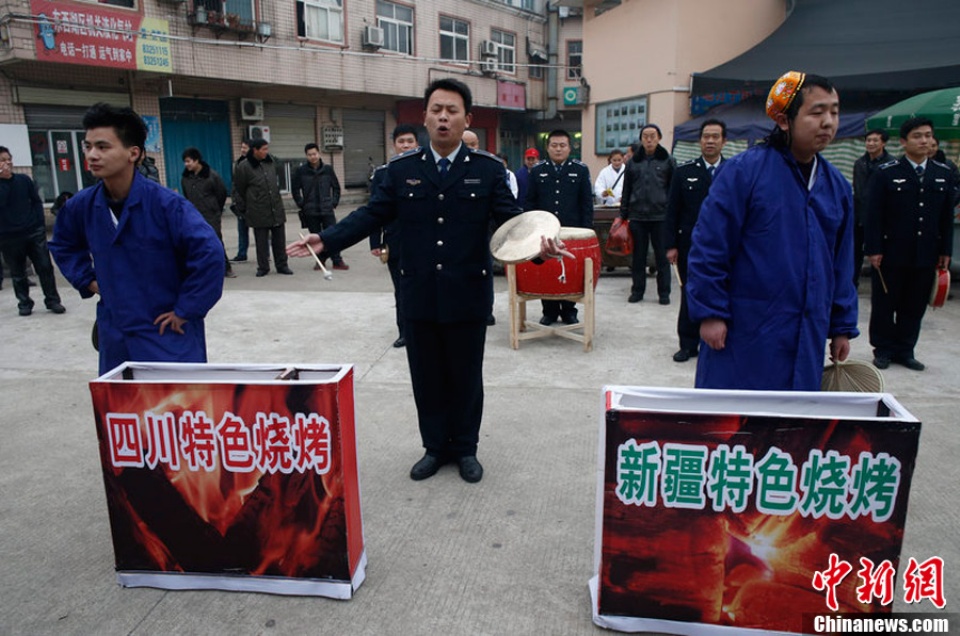 头条 > 图片 > 国内 > 武汉城管上街头演小品 为宣传绿色烧烤武汉城管出新招 时间:2013-02-04 19:38来源:未知 2月3日,武汉市东西湖区的南山美食市场成了这几位可爱的城管队员的舞台,几个城管扮演群众演员,在一旁摆着烧烤摊,烧烤的很多烟气让熏的一个演员睁不开眼。看着为城管大哥唱的多么深情啊,他拿着铁锣唱着曲子。周围的市民也是觉得有意思,这样的宣传真的是很有创意啊。 原始图片 上一张 下一张 (温视编辑)