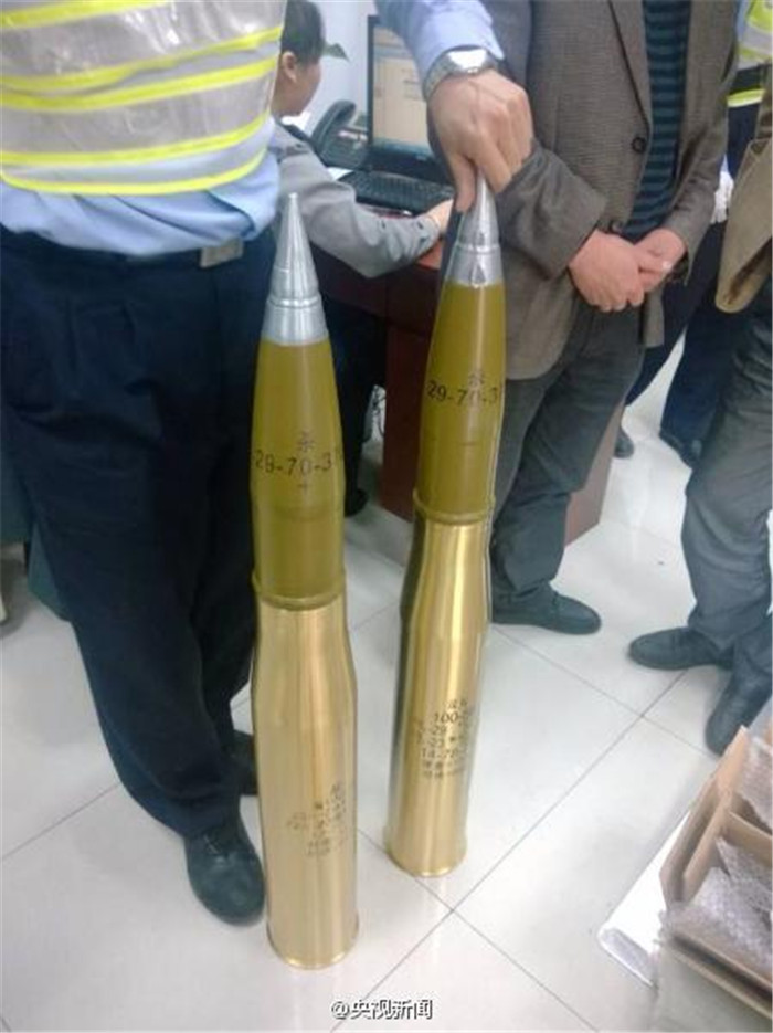头条 > 图片 > 国内 > 上海警方安检查获两枚舰炮炮弹空壳 特殊收藏品过安检必须申报 时间:2014-05-11 23:15来源:未知 【上海警方安检时查获两枚舰炮炮弹】2014年5月11日下午,上海市青浦区西岑镇道口警方安检时,在一辆汽车后备箱发现两个包裹,用X光机检查发现包裹里装有两枚管状物品,经开箱检查,发现是2枚100毫米舰炮炮弹,不过不是真的炮弹,只是炮弹的空壳,可能是作为收藏品收藏。 原始图片 上一张 下一张 (yujeu)