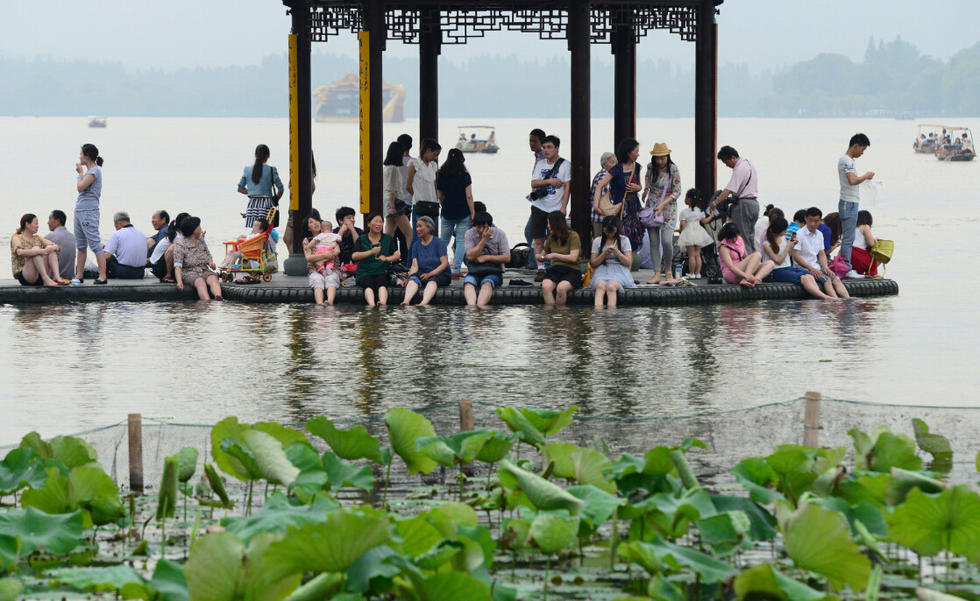 头条 > 图片 > 国内 > 夏天到西湖泡脚去 夏天泡脚去杭州西湖 时间:2014-05-29 19:02来源:未知 2014年5月28日,杭州天气很热,最高气温突破34℃,正式进入夏天了。去年杭州西湖就有万人泡脚的壮观景象,今年也一样,大家已经习惯夏天到西湖泡脚去,西湖是一个很大的洗脚盆,夏天泡脚去杭州西湖,亲近水,亲近自然。 原始图片 上一张 下一张 (yujeu)