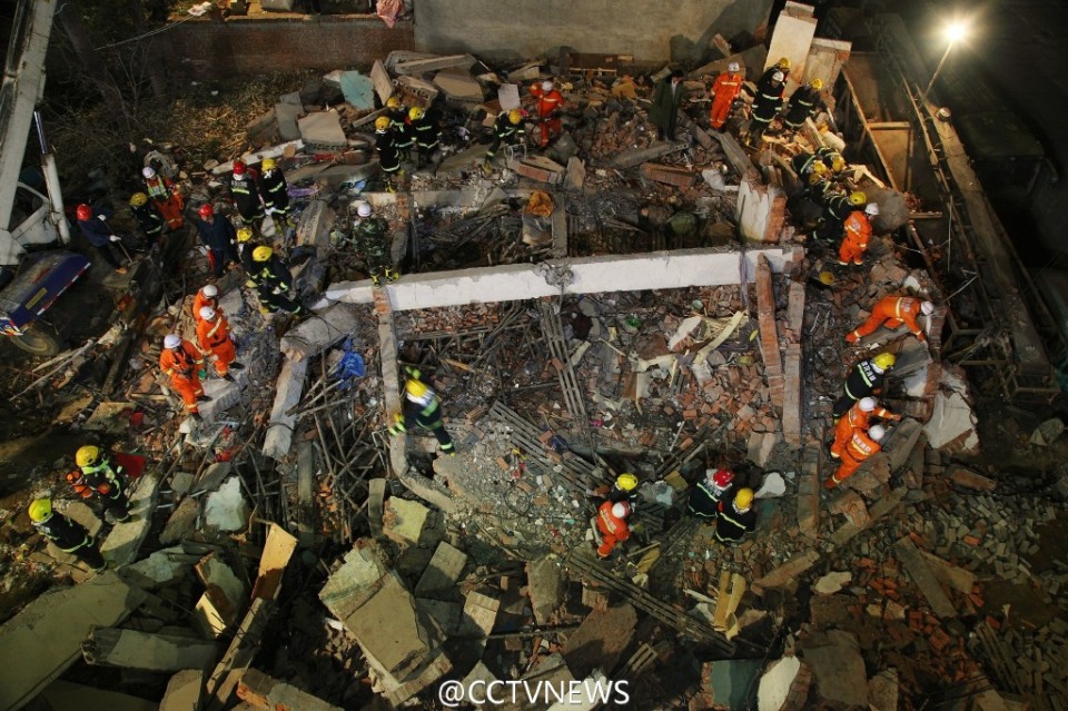 头条 > 图片 > 国内 > 河南在建房坍塌事故造成17人遇难9人重伤14人轻伤 时间:2015-10-31 19:44来源:未知 河南在建房坍塌:实际上发生坍塌事故的并不是在建房,而是翻建房,说是翻建其实是自找是死路,把混凝土和砖结构的两层楼房架空抬高,用小型千斤顶把整栋房子顶起来,结果发生整体坍塌,几十名施工人员被掩埋。 原始图片 上一张 下一张 (yujeu)