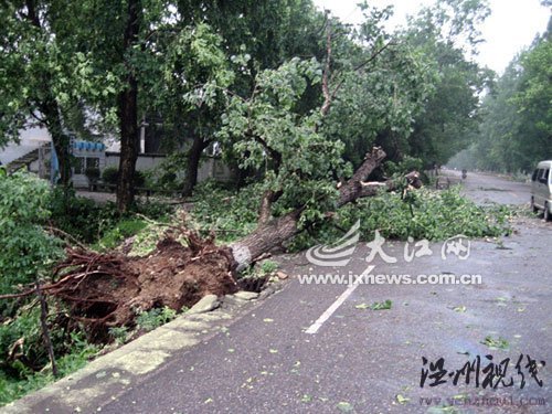 江西泰和县遭10厘米冰雹侵袭 树木连根拔起