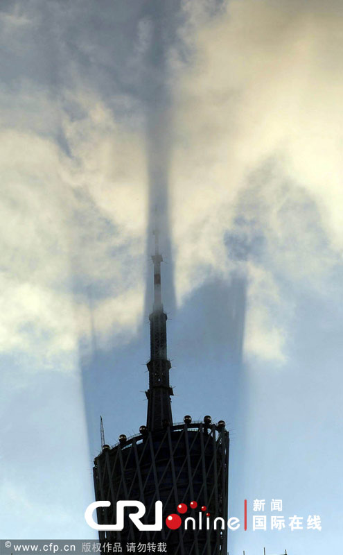 头条 > 图片 > 风景图片 > 海市蜃楼图片-广州项塔顶印在高空 多地出现海市蜃楼有意思 时间:2011-05-10 14:49来源:CFP 海市蜃楼图片-今天接连在海口和广州出现海市蜃楼,广州项塔顶印在高空,2011年5月10日早上7点多,广州塔顶端出现一条直冲天际的深蓝色投影线,紧接着在塔顶的背后出现广州塔的投影,仰望天空蔚为壮观。海市蜃楼是光线折射形成幻影,海市蜃楼的意思常被用来比喻虚无缥缈而不实际存在的事物,指眼前看到的和实际是不一样的,而且是不长久的。海市蜃楼也有形容风景很美的意思。 原始图片 上一张 下一张 (温州视线)