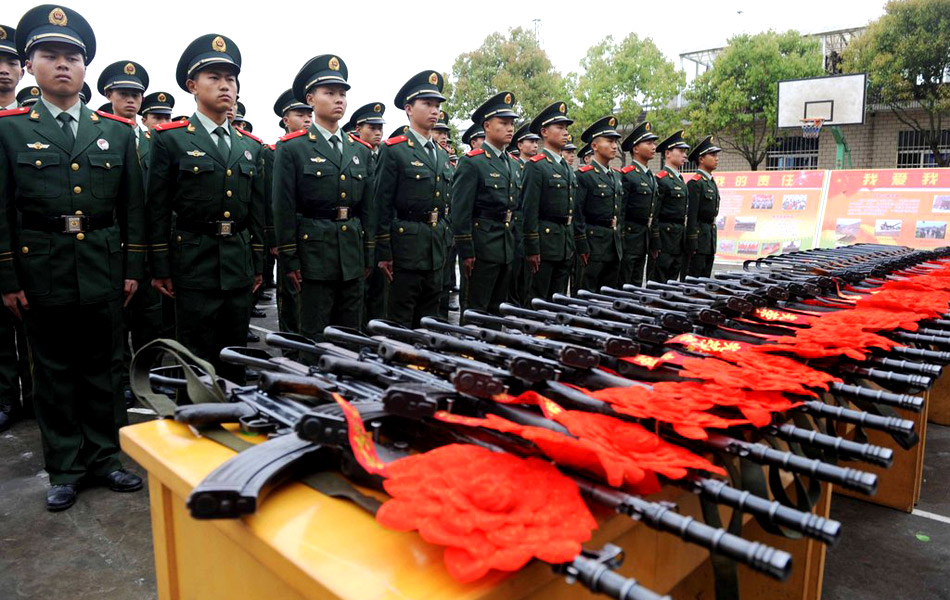 头条 > 图片 > 军事 > 安徽武警新兵授枪仪式 时间:2011-04-17 13:58来源:未知 2011年4月16日,武警安徽总队铜陵支队举行新兵授枪仪式,并组织新战士进行宣誓。图为武警安徽总队铜陵支队骆后来支队长为新兵进行授枪。 原始图片 上一张 下一张 (温州视线)