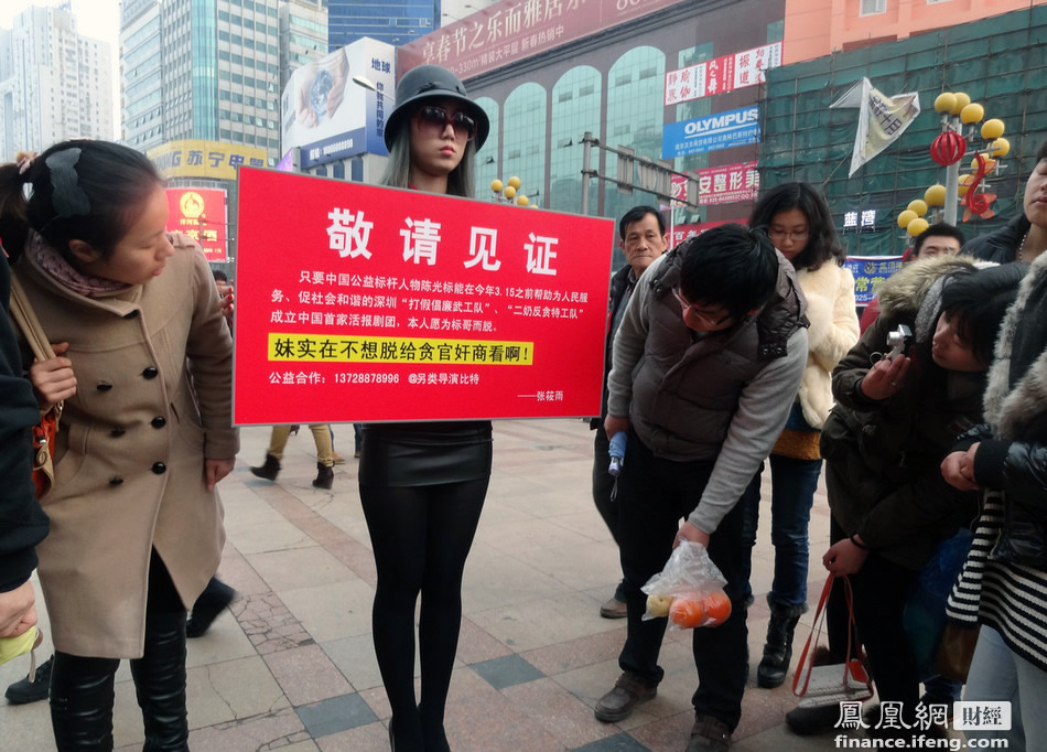 头条 > 图片 > 美女图片 > 中国第一裸模宣传打假倡廉武工队二奶反贪特工队 张筱雨扮刘胡兰 时间:2013-03-26 09:39来源:未知 张小雨扮刘胡兰宣传公益活动,2013年2月3日下午4点左右,有“中国第一裸模”之称的张小雨在南京新街口举牌宣传并请市民见证,牌上写着:只要中国公益标杆人物陈光标能在今年3.15之前帮助为人民服务、促社会和谐的深圳“打假倡廉武工队”、“二奶反贪特工队”成立中国首家活报剧团,本人愿为标哥而脱。妹实在不想脱给贪官奸商看啊!这应该是张小雨宣传“打假倡廉武工队”、“二奶反贪特工队”,而不是张小雨真的要复出。 原始图片 上一张 下一张 (yujeu)