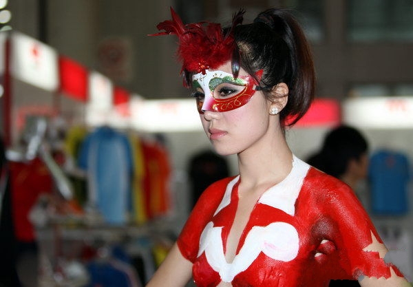头条 > 图片 > 娱乐图片 > 体博会人体彩绘 什么活动都离不开人体彩绘了 时间:2011-06-02 01:45来源:未知 体博会人体彩绘模特不敢真面目见人,这不是真正的人体艺术,而是利用人们的贪色,吸引人气。现在什么活动都搞人体彩绘来吸引人。2011年5月13日,中国国际体育用品博览会揭开大幕,现场活力四射的美女模特们为各厂家全力造势,而尤以现场的人体艺术彩绘最为惹眼,商家俗搞活动的组织俗都是跟风学人家搞什么人体艺术,体博会人体彩绘其实都是打着艺术的旗号,卖弄女性身体,也来充当人体艺术摄影,真是笑掉大牙。 原始图片 上一张 下一张 (温州视线)