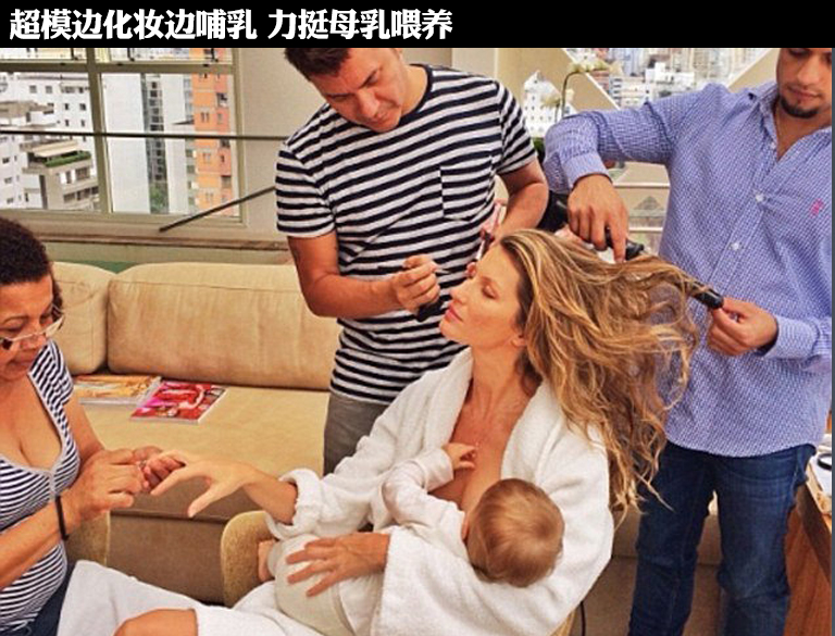头条 > 图片 > 娱乐图片 > 超模边化妆边哺乳 巴西超模吉赛尔晒哺乳照支持母乳喂养 时间:2013-12-14 13:59来源:未知 巴西超模边化妆边哺乳工作中照顾孩子,巴西模特吉赛尔晒哺乳照支持母乳喂养,在推特(Tweeter)上晒出一张边化妆边哺乳的照片,超模吉赛尔在公开场合给婴儿喂奶,并称此举是大力支持“母乳喂养”,超模吉赛尔晒哺乳照在网上引起广泛的关注,对推动母乳喂养有积极影响。 原始图片 上一张 下一张 (yujeu)