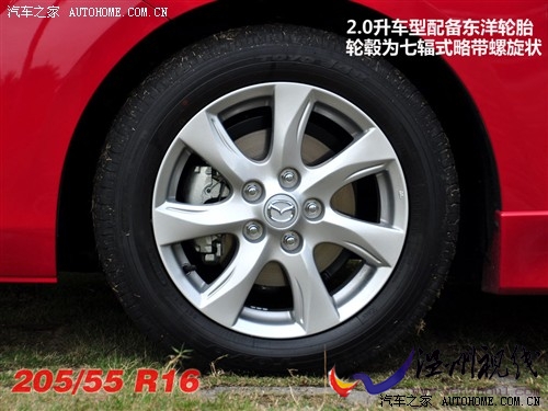 韩路果然没猜错,来到国内新款马自达3两厢并没有17吋版本的轮毂,1.6两款均为15吋,2.0两款为16吋。除了尺寸有大小之别,品牌也不相同,2.0L两款车型均采用东洋轮胎,尺寸为205/55 R16,而1.6L两款车型为邓禄普轮胎,尺寸195/65 R15。