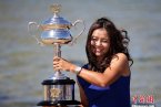 澳网决赛李娜夺冠后在澳大利亚墨尔本享受阳光沙滩,当地时间2014年1月26日,澳大利亚墨尔本,李娜手捧冠军奖杯拍摄澳网夺冠写真,女神味儿十足。