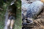 巨蟒肚内惊见好友:有媒体报道,印尼一名25岁男子深夜失踪,第二天,亲戚朋友在树林中找到一条肚子很大的巨蟒,大家怀疑失踪男子被巨蟒吃掉了,众人杀了蟒蛇剖开肚子,果然巨蟒肚内惊