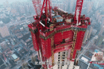 神器刷新中国速度:中国首创的“空中造楼机”挑战超高层建筑,这套空中造楼神器顶升力达4000多吨,300米以上的超高层,4天完成一层刷新中国速度,在全世界领先的地位。