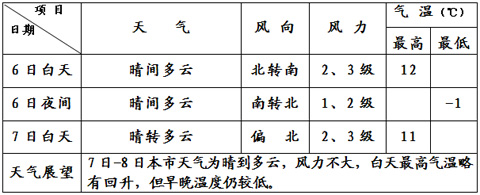 生活提示:6日白天到夜间天气晴好,风力不大,但早晚气温较低,注意防寒保暖。