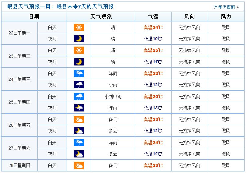 在26日,甘肃岷县当地的天气将逐渐转多云,27日可能还将出现阵雨的天气。