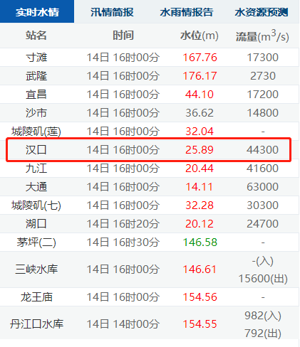 根据预报,未来一周,长江流域还将有一次大到暴雨、局地大暴雨过程,受其影响,预计汉口站水位将于7月15日超过26米。