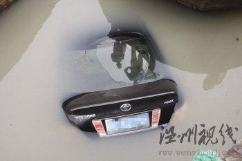 | 女司机被救出后,轿车慢慢沉入河里 |