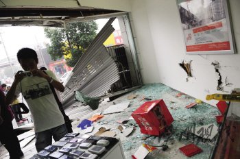 该卖场的一位负责人告诉记者,除了大门之外,店里的三个柜台被撞毁,里面存有60多部手机,目前损失情况尚在统计。