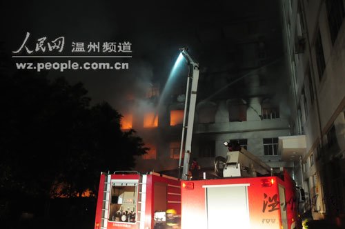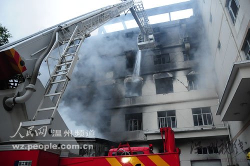 人民网温州频道6月19日讯(记者 尤颖逸 通讯员 徐行号 吴小磊)昨天上午6点50分,温州市意迈达鞋业有限公司燃烧了5个小时的大火,终于被成功扑灭。消防人员从火场内疏散转移了356名群众,无人在这场火灾中伤亡。