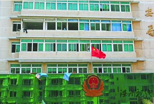公安局大楼多处窗户玻璃被震碎。郭真摄