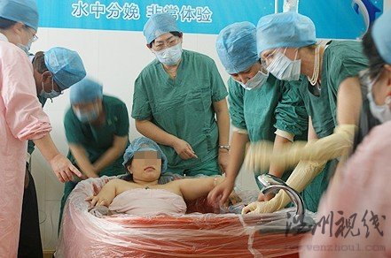 温州东方妇产医院张吟雪主任介绍说,"产妇泡在一只形似按摩浴缸的‘分娩水池’内,在助产士的指导下,合理换气、放松。由于产妇在温水中受到水压的张力,所以分娩过程的阵痛很少。婴儿在宫内羊水中虽然有胎动,但肺却没有张开,脐带没有剪断之前,即使从妈妈肚子一出来就泡在水里也不会呛水。"