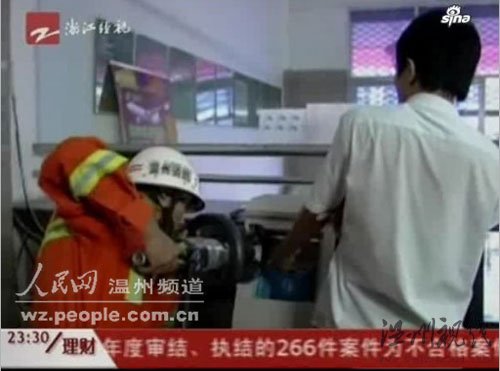 前天(8月18日)下午四点多,温州市瓯海区的一个邮政储蓄所里,一名男子的左手被十多万元人民币卡住,无法取出,救援人员随即赶到现场对该男子进行施救。