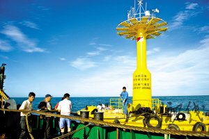 这个海洋气象大型浮标,在上周安放并通过验收,被放置在瑞安北麂岛以东海域,离海岸线约90公里的近海。和其他台风监测设备相比,它最大的能耐就是可以在海上直面台风。当台风来袭时,它能自动收集温州市附近海域的风力、波高等恶劣天气及海洋情况的数据变化;再通过卫星通信系统,每间隔10分钟,把这些资料实况传输到地面的数据接收处理系统,协同其他监测手段,为适时分析温州台风变化趋势提供更翔实数据。