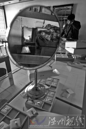出事的金店名叫锡安珠宝金行,位于瓯海区丽岙镇丽岙南路一商场内,共有2间店面,面朝104国道。珠宝被盗后,金店就停业了,前门“铁将军”把门,看不出什么异样。在金店老板林先生带领下,记者进入店内,原先摆放珠宝、金银首饰的柜台,大都已空荡荡了,柜台上零乱地放着数十个空的首饰盒。林先生说,他家金店是该镇最早的金店,由于丽岙是著名的侨乡,每逢圣诞节期间,生意非常好,为此店里刚进了不少货。“小偷把值钱的都偷走了。”林先生说,被偷走的都是黄金、白金首饰和钻石珠宝,如24K金的黄金首饰有近1公斤,价值20多万元,40多个镶有南非钻石的饰品,价值40多万元,加上白金等其他贵重物品,总价值大约125万元。