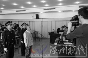 今天上午9点,瑞安法院开庭审理此案。旁听席上坐得很满,明确划分了交警席、家属席、记者席和其他席。据了解,如此布置是因今天旁听的人较多,并且比较杂。在两名法警的陪同下,胡某被带至庭上。他穿着囚服,一脸严肃,他一直站得笔直。