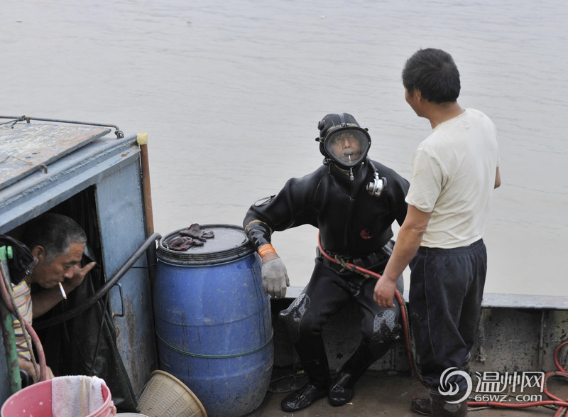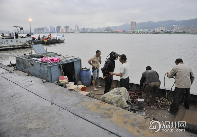 温州车渡码头轿车坠江救援人员(孙新尖/摄)