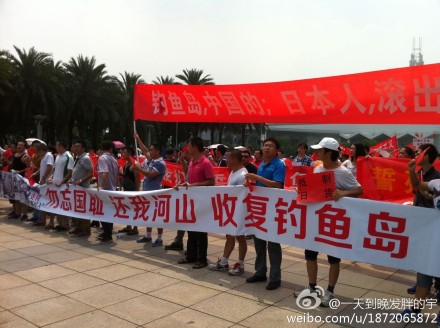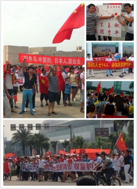 温州市民的爱国热情被激发了,拉上横幅在世纪广场和市政府前举行小型的游行示威活动。横幅上有写“狗日的滚出中国,打到美日帝国主义”,“捍卫钓鱼岛,全民抵制日货”,“打倒小日本,还我钓鱼岛”等等标语,可见温州人的爱国热情还是很高的。
