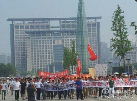 今日上午,温州保钓人士齐聚世纪广场举行示威游行