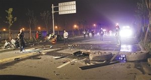 “昨晚12点多点吧,好几辆消防车拉着警报开过去,我还以为着火了。”事故现场附近排档的老板告诉记者,“当时车子开得很快,‘嗖’一下就不见影子了,音响还开得很大声,没几分钟,就听到‘轰’的一声撞上了。后来有人跑去看了,整个车都变形,人都飞出来了,很惨。”