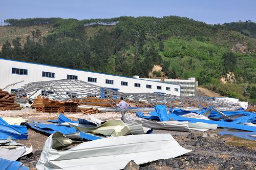 这是环江毛南族自治县一企业厂房被大风刮塌(4月21日摄)。