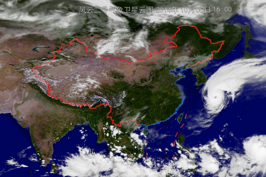 温州台风网 2014年10月5日16时,气象部门更新19号台风黄蜂云图和台风的最新数据