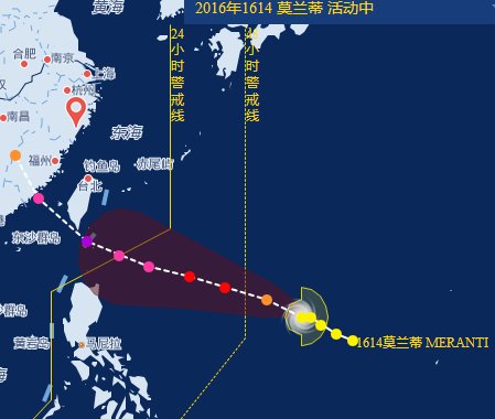 2016年14号台风莫兰蒂:9月10日下午2点生成,预计莫兰蒂台风路径向西北移动,可能在9月15日前后登陆广东福建沿海,中秋前后台风莫兰蒂可能影响温州,但是登陆温州可能性不大。